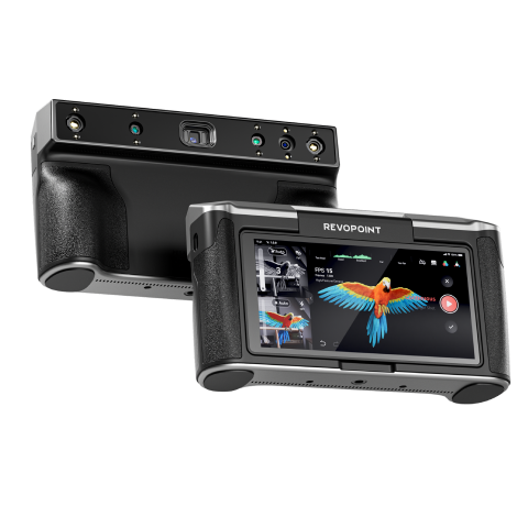 Portable infrared laser and structured light 3D scanner with a volumetric accuracy of up to 0.05 + 0.1 mm x L (m) and supports outdoor scans.