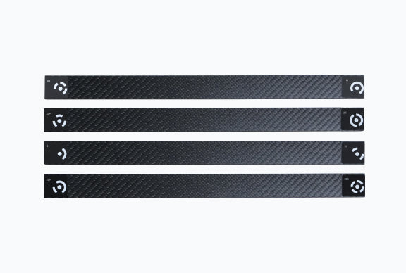 The scale bars are constructed from lightweight and highly accurate carbon fiber. Each of the 4 rulers has coding targets on both ends, providing a total of 8 unique coded targets.