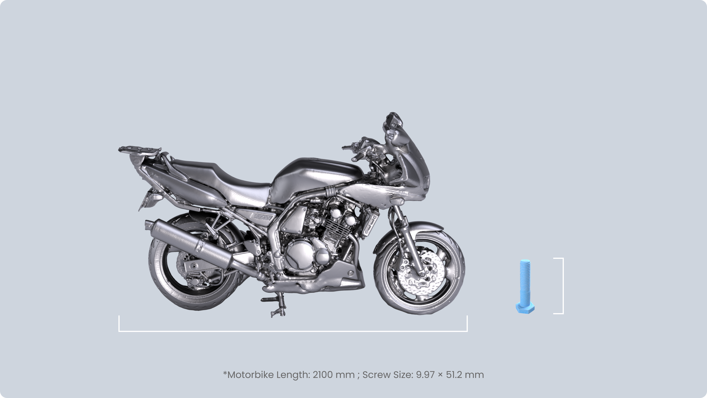 For example, if the length of object is 2 meters, the total error will be 0.02 mm + 0.05 mm x 2 m = 0.12 mm. This ensures that accuracy is maintained within acceptable tolerances for manufacturing, prototyping, and reverse engineering applications.