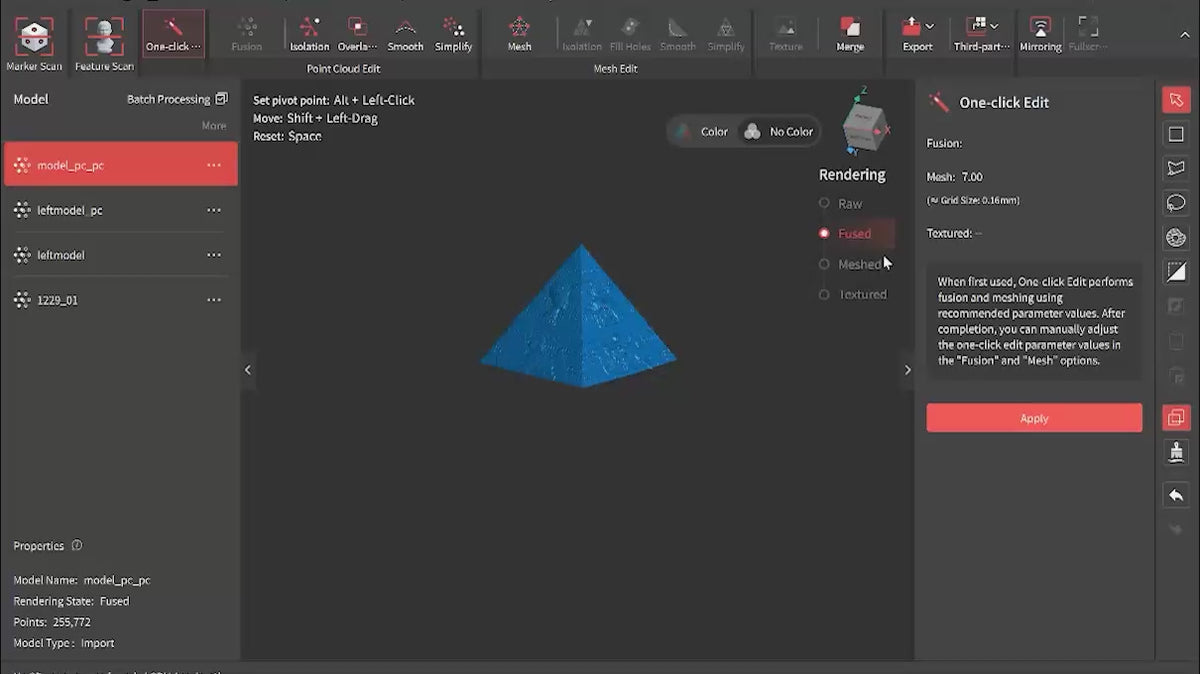 Output Formats: PLY, OBJ, STL, ASC, 3MF, GLTF, FBX