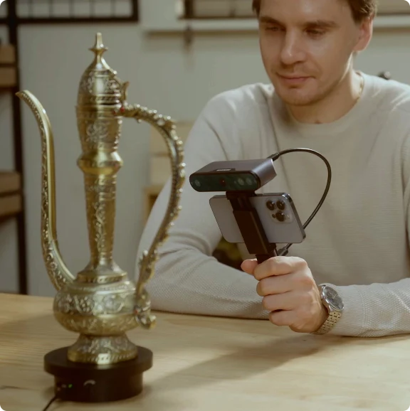 With a compact 140g pocketable body, INSPIRE scanner can go everywhere and works as a handheld or turntable 3D scanner. It even connects to your Android or iOS smartphone for accessible on-the-go mobile scanning.