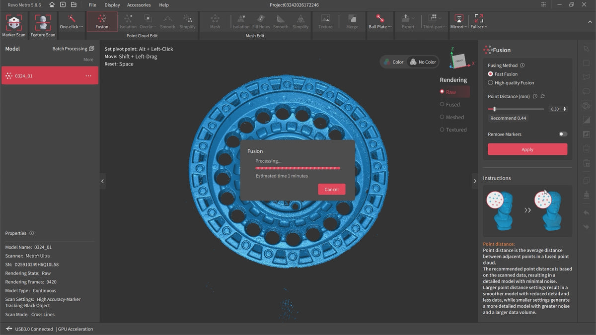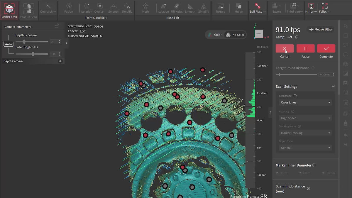 process, ensuring optimal point cloud capture. Ensure a perfect scan with