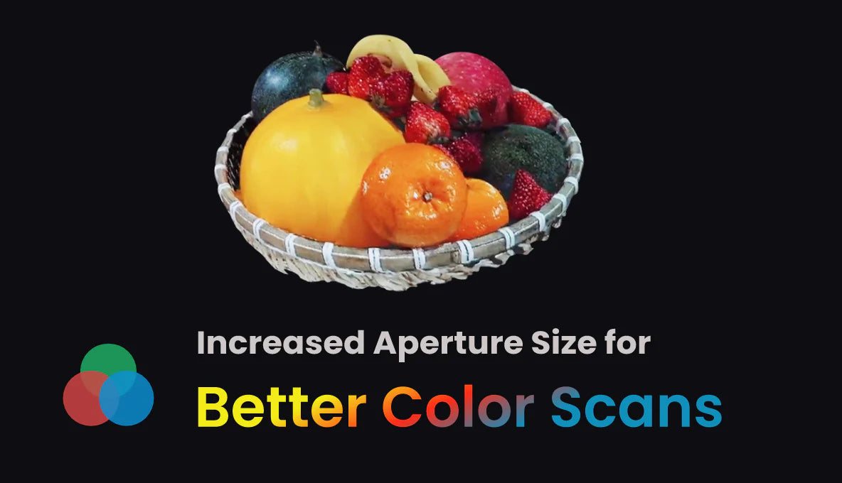 Create vibrant, lifelike, full-color 3D scans with POP 3’s improved RGB camera’s 30% larger aperture, letting more light reach the sensor, and dual camera-mounted white LEDs removing shadows from objects.