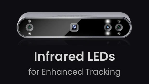 POP 3's furthest single capture range of 244 mm x 180 mm detects multiple features for accurate tracking, while the quad infrared fill lights greatly enhance maker tracking for smoother, featureless object scanning.
