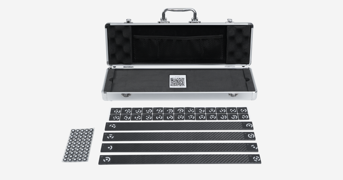 The PMK comes in a smart-looking aluminum carry case that securely holds the 4 magnetic high-precision carbon fiber scale bars, 2 sets of coded targets (sticky x208 and magnetic x208), and 500 markers.