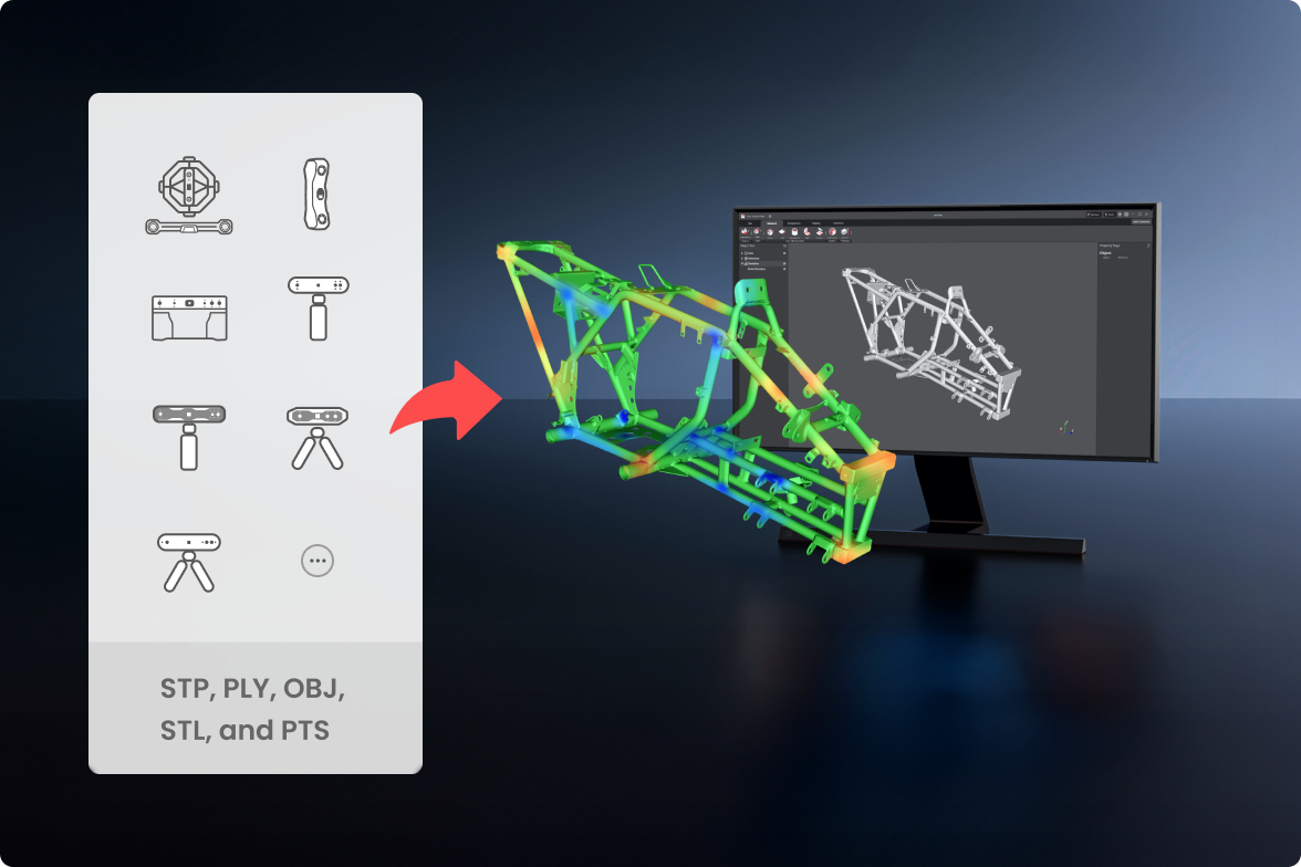 Works seamlessly with all Revopoint scanners and supports importing CAD models, point clouds, and mesh files in major formats like STP, PLY, OBJ, STL, and PTS, ensuring broad compatibility.