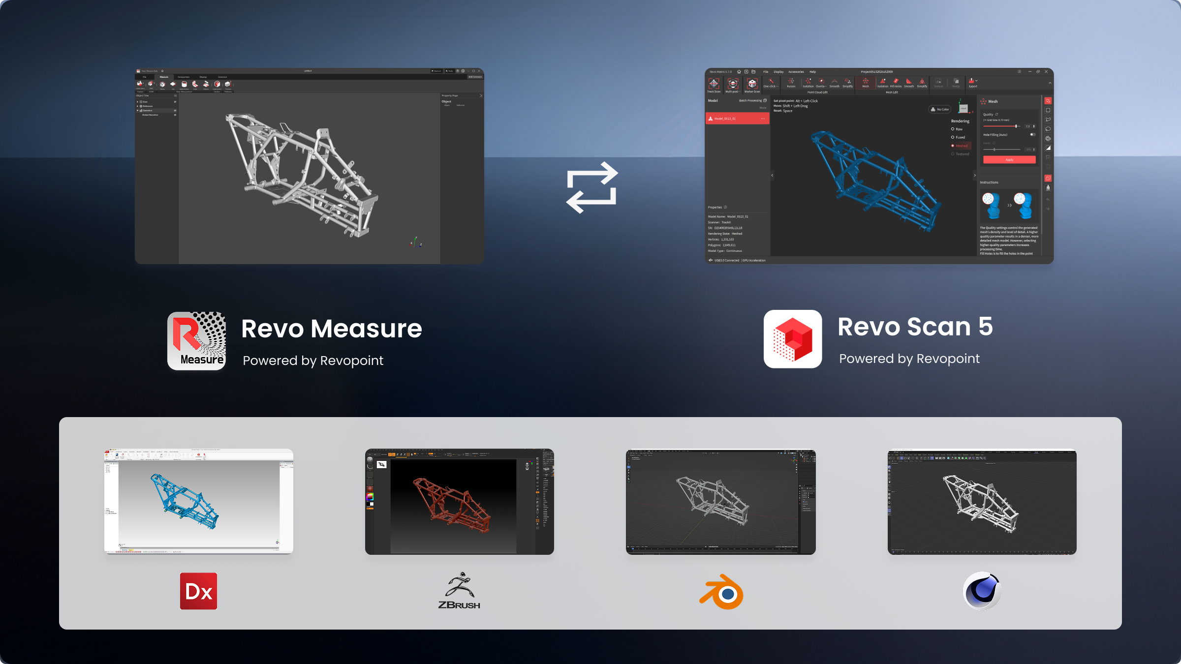 Seamlessly import point clouds and meshes created in all Revopoint scanning software into Revo Measure for an integrated workflow.